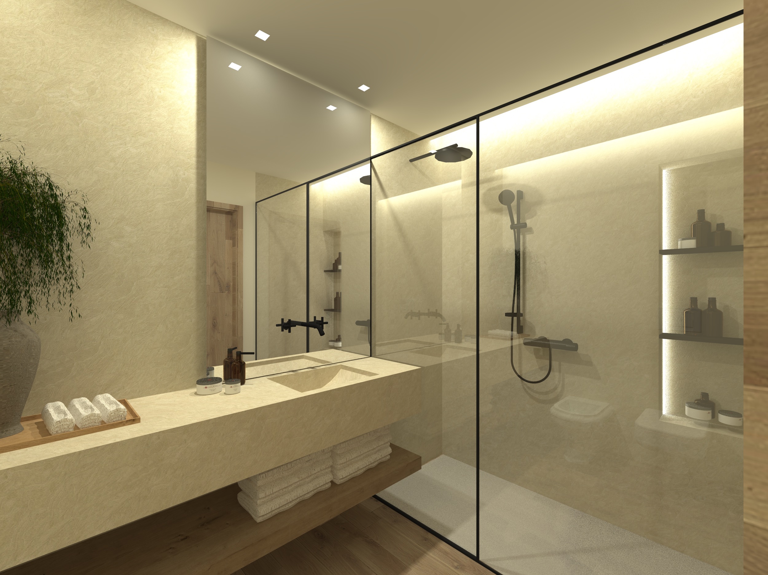 • Casas de Banho: Com acabamentos sofisticados que combinam funcionalidade e elegância.